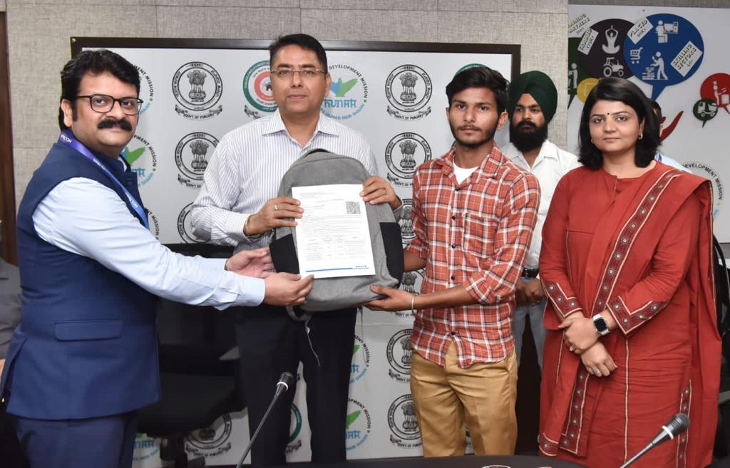मल्टी- नेशनल कंपनी (एम.एन.सी.) के लिए चुने जाने पर राज्य के मैरीटोरियस स्कूल के विद्यार्थियों की हौसला-अफ़ज़ायी करते हुये पंजाब के रोज़गार उत्पत्ति, कौशल विकास और प्रशिक्षण मंत्री अमन अरोड़ा ने आज यहाँ पंजाब कौशल विकास मिशन के दफ़्तर में 15 उम्मीदवारों को ऑफर लेटर और लैपटॉप सौंपे। एच. सी. एल. के टेक बी प्रोग्राम के लिए चुने गए इन 15 विद्यार्थियों का चयन मोहाली, बठिंडा, पटियाला, संगरूर, फ़िरोज़पुर और लुधियाना स्थित छह मैरीटोरियस स्कूलों में से की गई है।