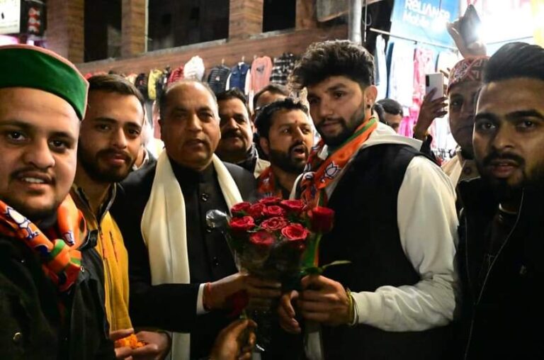 सोलन स्थित मॉलरोड पर लगाए गए "नमो टी स्टॉल" में भारतीय जनता युवा मोर्चा के साथियों के साथ चाय का...