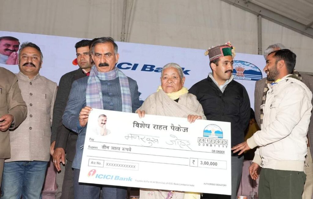 मुख्यमंत्री ठाकुर सुखविंदर सिंह सुक्खू ने इस साल बरसात में भारी बारिश, भू-स्खलन व बाढ़ के कारण शिमला ज़िले के आपदा प्रभावित परिवारों के ‘पुनर्वास’ के लिए आज ठियोग में 22.81 करोड़ रुपये की धनराशि वितरित की। उन्होंने 395 परिवारों को जिनके घर पूरी तरह क्षतिग्रस्त हुए उन्हें पहली किस्त के रूप में 3-3 लाख रुपये और अन्य 1840 प्रभावितों को 10.96 करोड़ रुपये की धनराशि जारी की।
