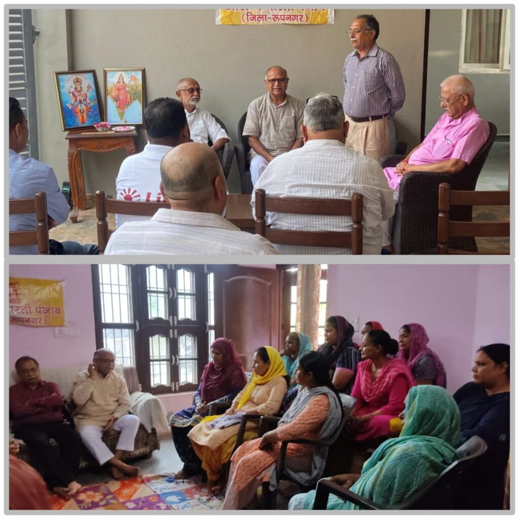 शि.प., स्वास्थ्य के क्षेत्र में देशभर में सामाजिक जागरूकता हेतु कार्य कर रही संस्था आरोग्य भारती का जिला रूपनगर में तीन दिवसीय कार्यक्रम संपन्न हुआ। कार्यक्रम में आरोग्य भारती की अखिल भारतीय स्वस्थ ग्राम योजना के प्रमुख सदाशिव ने जिला रूपनगर में तीन दिवसीय प्रवास के दौरान तहसील नंगल के गांव टपरिया, तहसील आनंदपुर साहिब के गांव पहाड़पुर, मोहीवाल, तारापुर, बणी, तहसील नूरपुर बेदी के गांव तखतगढ़ में अन्य सहयोगियों के साथ ग्रामीण स्वास्थ्य पर आम जन से मिलकर जानकारी सांझा की। तीन जुलाई से 6 जुलाई तक संपन्न हुए इस स्वस्थ्य ग्राम योजना कार्यक्रम में लोगों को पर्यावरण, जैविक खेती, जड़ी बूटियों की पैदावार जैसे महत्वपूर्ण विषयों के साथ-साथ स्वस्थ ग्राम की कल्पना पर अखिल भारतीय प्रमुख ने रोचक ढंग से जानकारी दी। इस दौरान उन्होंने रूपनगर जिला कार्यकारिणी को भी संबोधित किया। आरोग्य भारती के इस जागरूकता कार्यक्रम में ग्रामीण महिलाओं ने बढ़ चढ़कर भाग लिया। इस प्रवास में आरोग्य भारती पंजाब के प्रमुख वैद्य ईश्वर चंद्र सरदाना ने संस्था के स्वास्थ्य सेवा कार्यों व अन्य आयामों की विस्तृत जानकारी दी। इस प्रवास में आरोग्य भारती जिला अध्यक्ष मधु कालड़ा, बलराम पराशर, बबली चांदला, शैरी पराशर, सतीश कलसी आदि भी विशेष रूप से उपस्थित रहे।