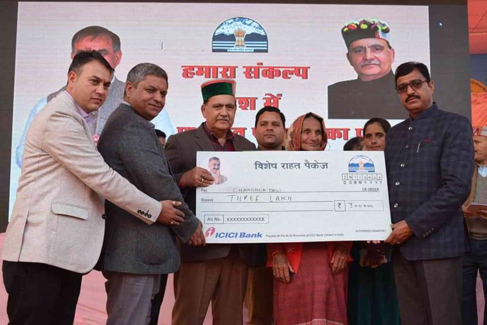 कुलदीप सिंह पठानिया ने ज़िला के 70 परिवारों को पूर्ण रूप से क्षतिग्रस्त घरों के लिए पहली किस्त के रूप में 3-3 लाख रुपए जारी किए।