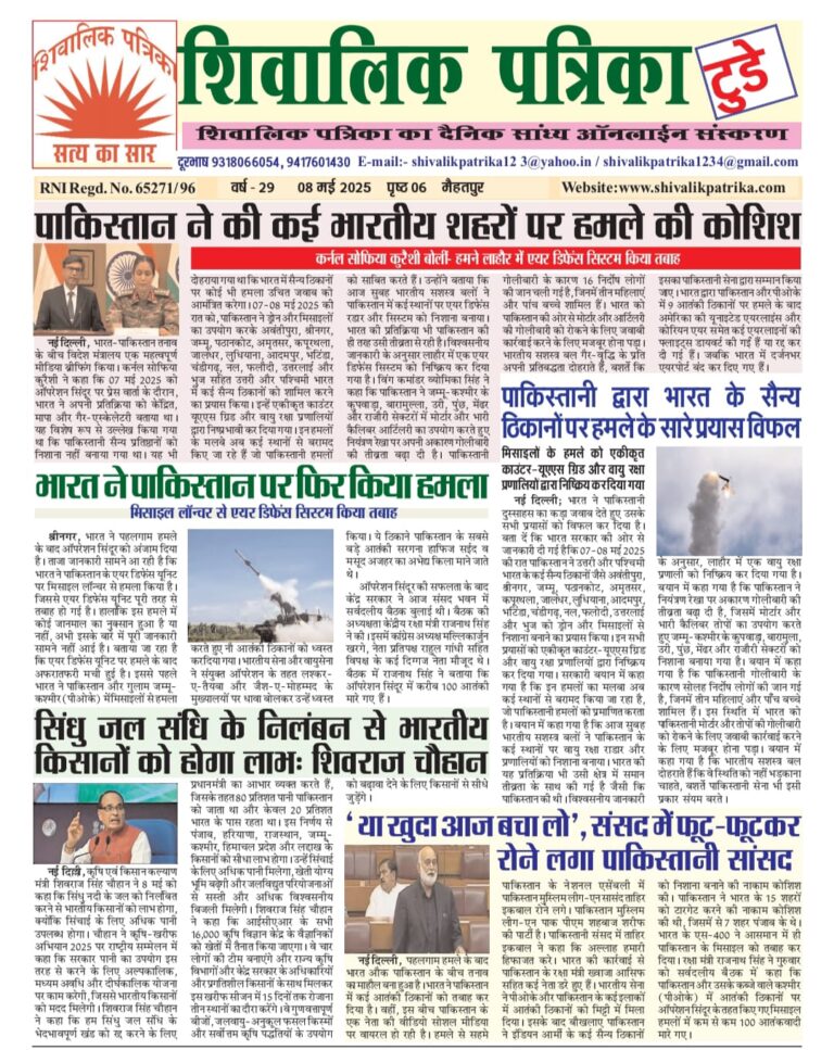 कृषि एवं किसान कल्याण मंत्री शिवराज सिंह चौहान ने 8 मई को कहा कि सिंधु नदी के जल को निलंबित...