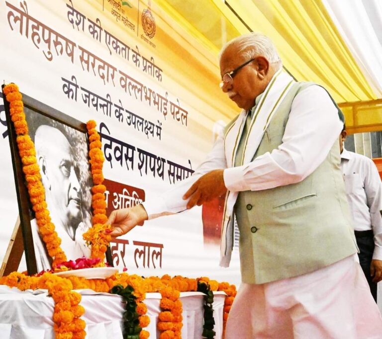मुख्यमंत्री मनोहर लाल ने राष्ट्रीय एकता दिवस पर देश के प्रथम गृह मंत्री लौह पुरुष सरदार वल्लभ भाई पटेल को...