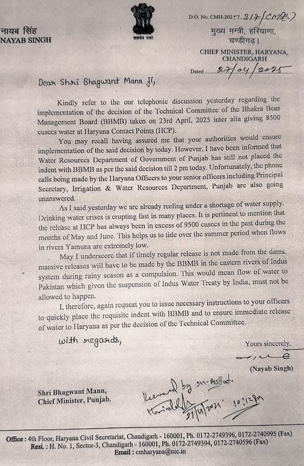 मुख्यमंत्रीनायब सिंह सैनी ने पंजाब के मुख्यमंत्री भगवंत मान के जल वितरण बयान को आश्चर्यजनक बताया। कहा—26 अप्रैल को उन्होंने...