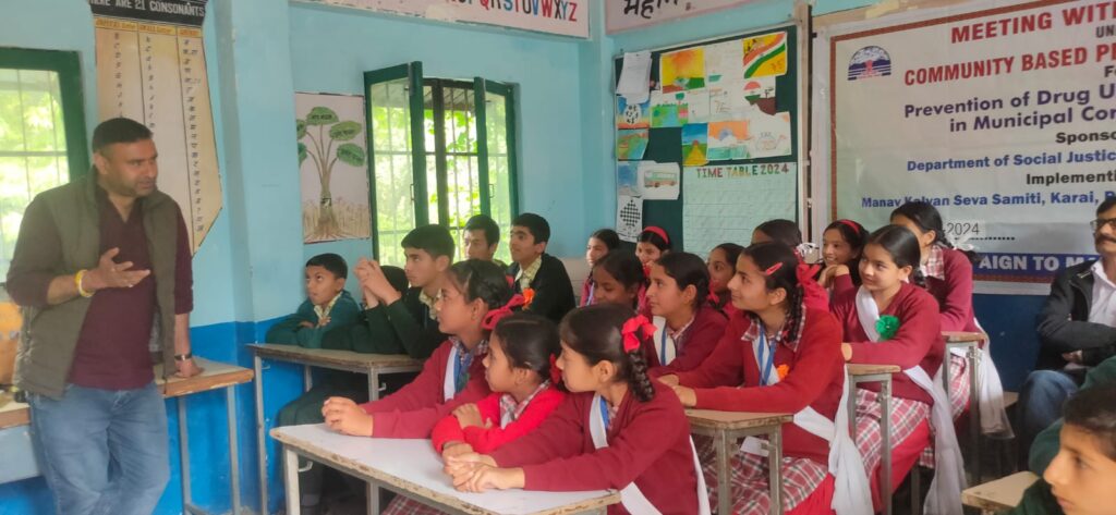 देश राज शर्मा, शिमला, हिमाचल प्रदेश सरकार के सामाजिक न्याय और अधिकारिता विभाग द्वारा वित्त पोषित और मानव कल्याण सेवा समिति चौपाल जिला शिमला द्वारा संचालित CPLI योजना के अंतर्गत व विशेष तौर पर नगर निगम शिमला में चल रहे नशा मुक्त भारत अभियान के तहत जागरूकता कार्यक्रम में आज दिनांक 27अप्रैल 2024 को एडवांस स्टडी स्तिथ गवर्मेन्ट हाई स्कूल में एक जागरूकता शिविर का आयोजन किया गया ।
