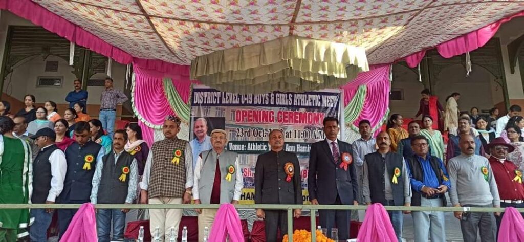 मोहित कांडा, हमीरपुर , अंडर-19 छात्र-छात्राओं की तीन दिवसीय जिला स्तरीय एथलेटिक्स प्रतियोगिता सोमवार को अणु के सिंथेटिक ट्रैक पर आरंभ हुई। इसमें जिले भर के स्कूलों के एथलीट भाग ले रहे हैं। मुख्यमंत्री के राजनीतिक सलाहकार सुनील शर्मा बिट्टू ने ध्वजारोहण और एथलीटों के मार्चपास्ट की सलामी के बाद विधिवत रूप से इस प्रतियोगिता के शुभारंभ की घोषणा की।