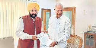 चंडीगढ़, पंजाब के मुख्यमंत्री भगवंत सिंह मान ने राज्यपाल बनवारी लाल पुरोहित को कुछ महीने पहले राज्य विधान सभा द्वारा पास किए पाँच बिलों को तुरंत मंज़ूरी देने की अपील की।