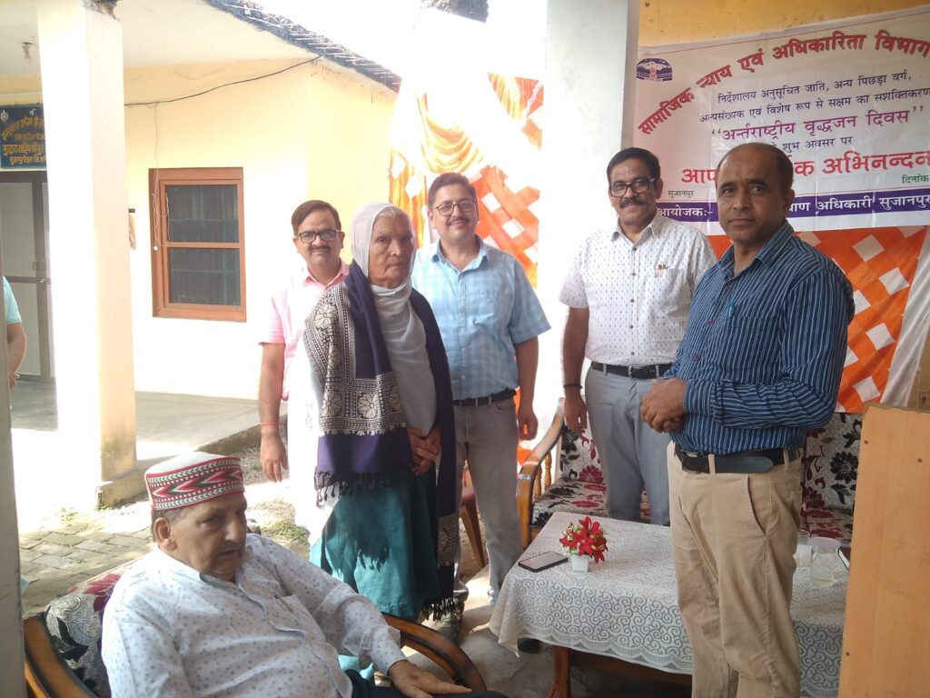 मोहित कांडा, हमीरपुर, 30 सितंबर। अंतराष्ट्रीय वृद्धजन दिवस के उपलक्ष्य पर सामाजिक न्याय एवं अधिकारिता विभाग ने शनिवार को सुजानपुर में एक कार्यक्रम आयोजित किया, जिसकी अध्यक्षता एसडीएम राकेश शर्मा ने की। इस अवसर पर देश और समाज के विकास में वरिष्ठ नागरिकों के योगदान की सराहना करते हुए एसडीएम ने कहा कि इनके आशीर्वाद और मार्गदर्शन से ही हम आज इस मुकाम पर पहुंचे हैं। उन्होंने कहा कि जीवन में आगे बढ़ने के लिए बुजुर्गों का आशीर्वाद और मार्गदर्शन सर्वोपरि होता है। इनके सम्मान में हर वर्ष पहली अक्तूबर को अंतर्राष्ट्रीय वृद्धजन दिवस मनाया जाता है। इससे पहले तहसील कल्याण अधिकारी बलदेव सिंह चंदेल ने मुख्य अतिथि, अन्य अधिकारियों तथा वरिष्ठ नागरिकों का स्वागत किया और बुजुर्गों के कल्याण के लिए सरकार द्वारा चलाई जा रही विभिन्न योजनाओं की जानकारी दी। बाल विकास परियोजना अधिकारी कुलदीप सिंह चैहान ने भी अंतर्राष्ट्रीय वृद्धजन दिवस के महत्व पर प्रकाश डाला। समारोह के दौरान वरिष्ठ नागरिकों के लिए स्वास्थ्य जांच शिविर भी लगाया गया तथा चार बुजुर्गों 84 वर्षीय संसार चंद धीमान, 75 वर्षीय रघु राम, 80 वर्षीय गीता देवी और 96 वर्षीय मिलापो देवी को शाॅल एवं टोपी भेंट करके सम्मानित भी किया गया। समारोह में तहसीलदार डाॅ. अशोक पठानिया, अन्य अधिकारी, नगर परिषद के पूर्व अध्यक्ष तिलक राज कश्यप तथा बड़ी संख्या में वरिष्ठ नागरिक भी उपस्थित थे।