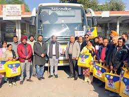 तलवाड़ा: मुख्यमंत्री तीर्थ यात्रा योजना के गत दिवस दातारपुर से माता नैना देवी, श्री आनंदपुर साहिब, माता चिंतपूर्णी और माता ज्वाला देवी के दर्शन के लिए बस रवाना हुई जिसे हलका दसूहा से विधायक कर्मवीर सिंह घुम्मन ने हरी झंडी दिखाई। उनके साथ तहसीलदार दसूहा मनवीर सिंह ढिल्लों, जीएम पंजाब रोडवेज होशियारपुर डिपो जसबीर सिंह, बाबा राजेंद्र जिंदा भी मौजूद थे। दसूहा से माता नैना देवी, श्री आनंदपुर साहिब, माता चिंतपूर्णी वं माता ज्वाला देवी जी की यात्रा के लिए श्रद्धालुओं की बस को रवाना करने के मौके पर विधायक घुम्मण ने कहा कि इस स्कीम के शुरू होने से पंजाब वासियों को देश भर में अलग-अलग तीर्थ स्थानों के दर्शनों के लिए जाने के लिए सफर की सुविधा नि:शुल्क मिली है। इस स्कीम के अंतर्गत यात्रा पर जाने वाले यात्रियों का खर्चा पंजाब सरकार करेगी, जिसमें उनके आने-जाने, ठहरने वं खाने-पीने का सारा खर्चा शामिल है। इस मौके पर गणेश मंदिर प्रबंधक कमेटी से सेवादार, एवं आप ब्लाक प्रधान बॉबी कौशल(दातारपुर), बी.डी.पी.ओ सुखप्रीतपाल सिंह, एस.एम.ओ दविंदर पुरी, कुलदीप सिंह, आप प्रधान करनैल राणा, बाल लंबड, अजय मि_ू, राजेश सोनी, बृजमोहन पप्पू, शशिपाल खटिगढ़, काका चौधरी रकड़ी हार, राजेश डिंपा, विशाल केशव, प्रेम कुमार, पिंकी मेहता, जे.पी भाखन, अरुण कश्यप, सोहन लाल, अश्विनी नंदा, प्रेम लाल मौजूद थे।