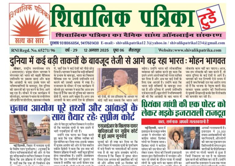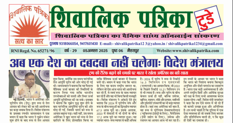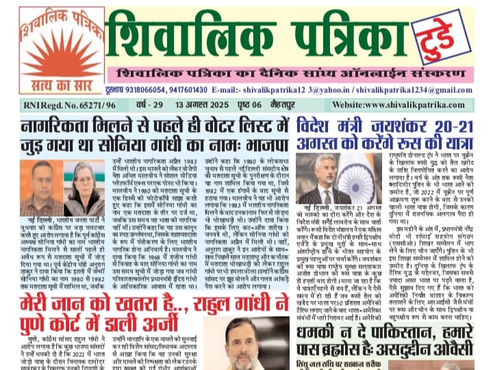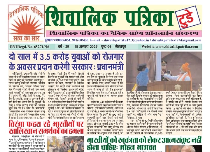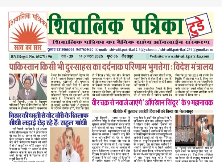 Shivalik Patrika Evening E-paper 10 August. 2025