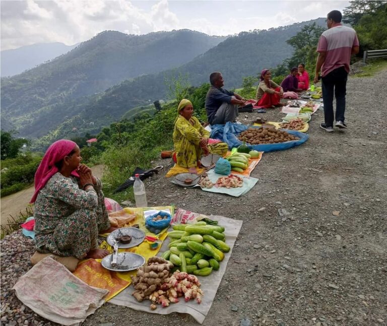जोगिन्दर नगर-पठानकोट हाईवे पर गलू व गुम्मा के बीच दो दर्जन महिलाएं बेच रही मौसमी फल व सब्जियां कोविड काल...