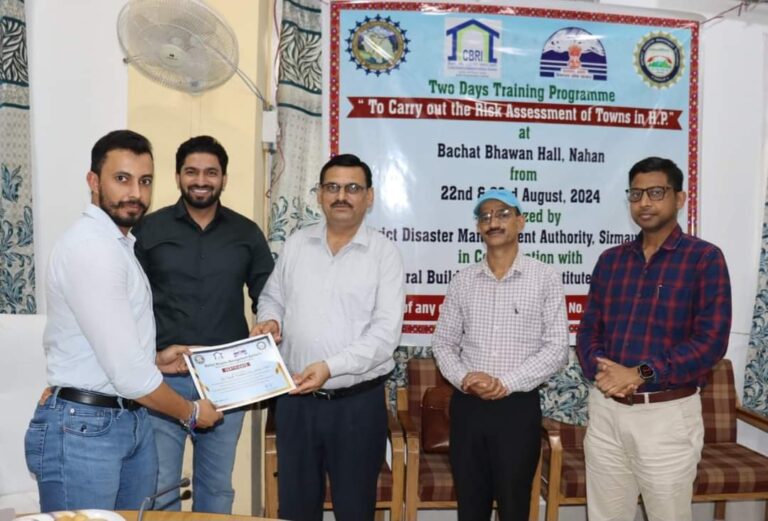 नाहन , ज़िला आपदा प्रबंधन प्राधिकरण सिरमौर, केन्द्रीय भवन अनुसंधान संस्थान (सीबीआरआई) रुड़की, राष्ट्रीय आपदा प्रबंधन प्राधिकरण तथा हिमाचल प्रदेश...