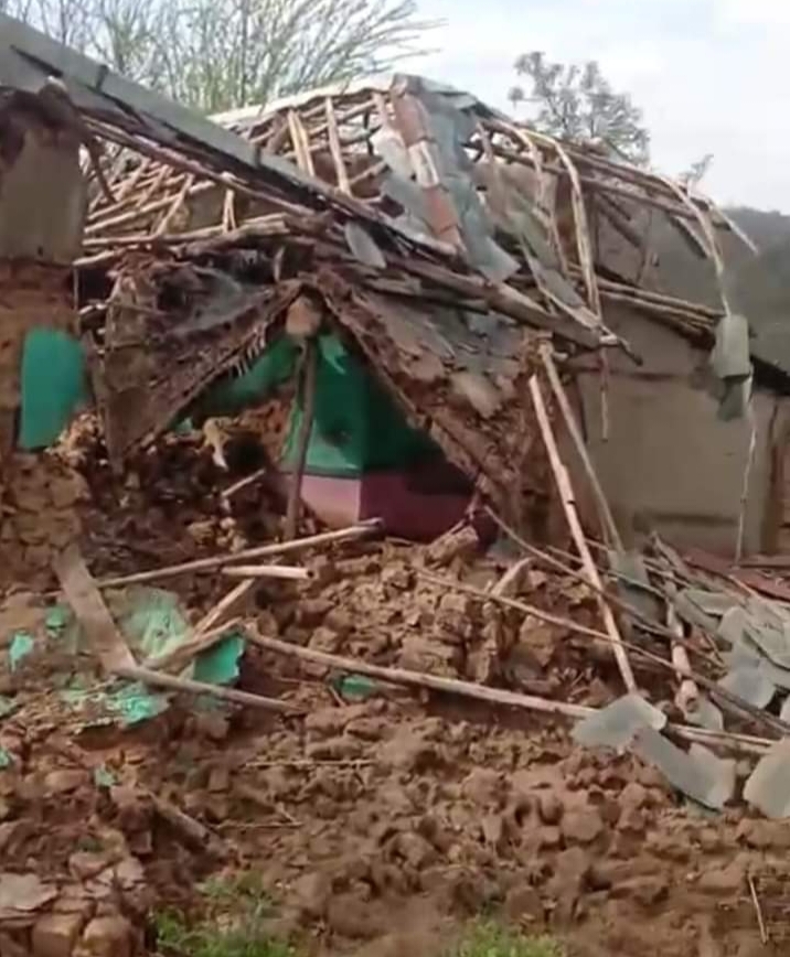 उक्त गांव के राज कुमार के घर की उड़ी टीन,रमेश के मकान पर गिरा आम का पेड़, थानाखास गांव में...