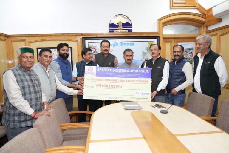 मुख्यमंत्री ठाकुर सुखविंदर सिंह सुक्खू को आपदा राहत कोष के लिए आज यहां हिमाचल प्रदेश सामान्य उद्योग निगम की ओर...