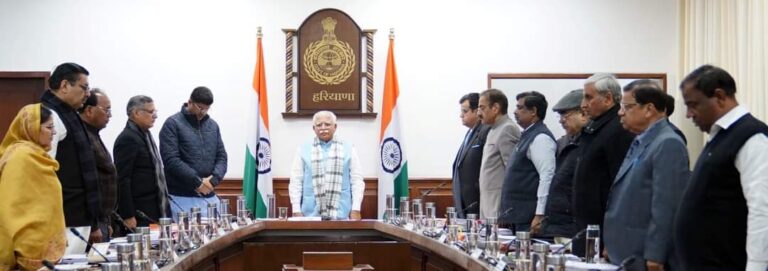 मुख्यमंत्री मनोहर लाल सहित कैबिनेट मंत्रियों और अधिकारियों ने हरियाणा सिविल सचिवालय, चंडीगढ़ में कैबिनेट मीटिंग के दौरान भारत के...