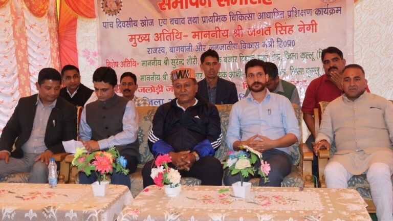 कुल्लू , राजस्व एवं बागवानी व जनजातीय विकास मंत्री जगत सिंह नेगी जलोड़ी में पांच दिवसीय खोज ,बचाव एवम प्राथमिक...