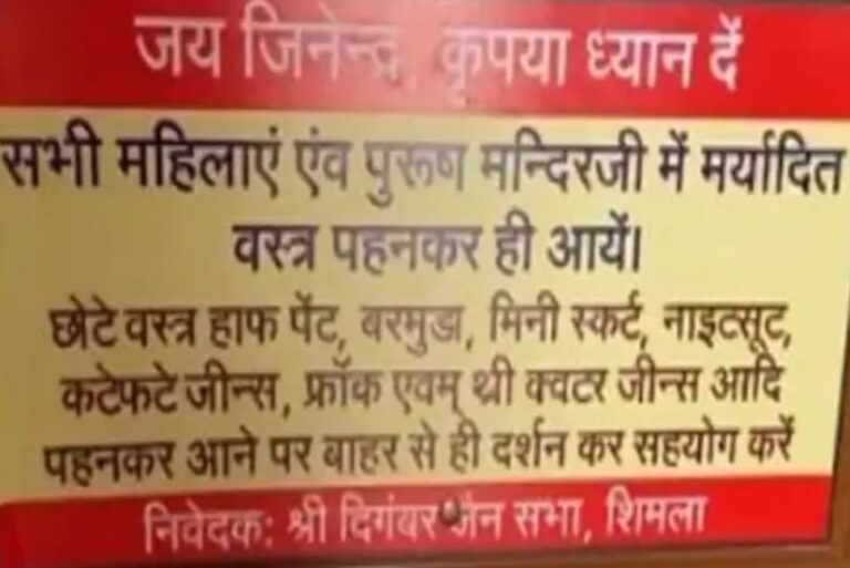 शिमला, हिमाचल प्रदेश की राजधानी शिमला स्थित जैन मंदिर में भी ड्रेस कोड अनिवार्य कर दिया गया है। दिगंबर जैन...