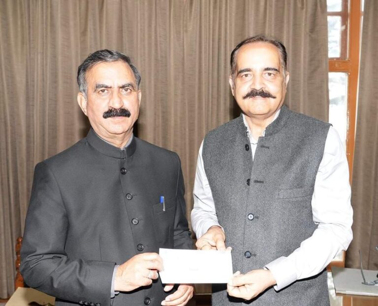 मुख्यमंत्री ठाकुर सुखविंदर सिंह सुक्खू को आज शिमला में केम्ब्रिज इंटरनैशनल स्कूल पालमपुर के अध्यक्ष संजीव शर्मा ने मुख्यमंत्री राहत...