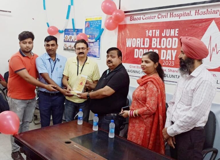 ऊना/ सुखविंदर/ गगरेट विधानसभा क्षेत्र की टाइडी एंड सोबर टुमारो फाउंडेशन को रक्तदान के क्षेत्र में बेहतर कार्य करने के...