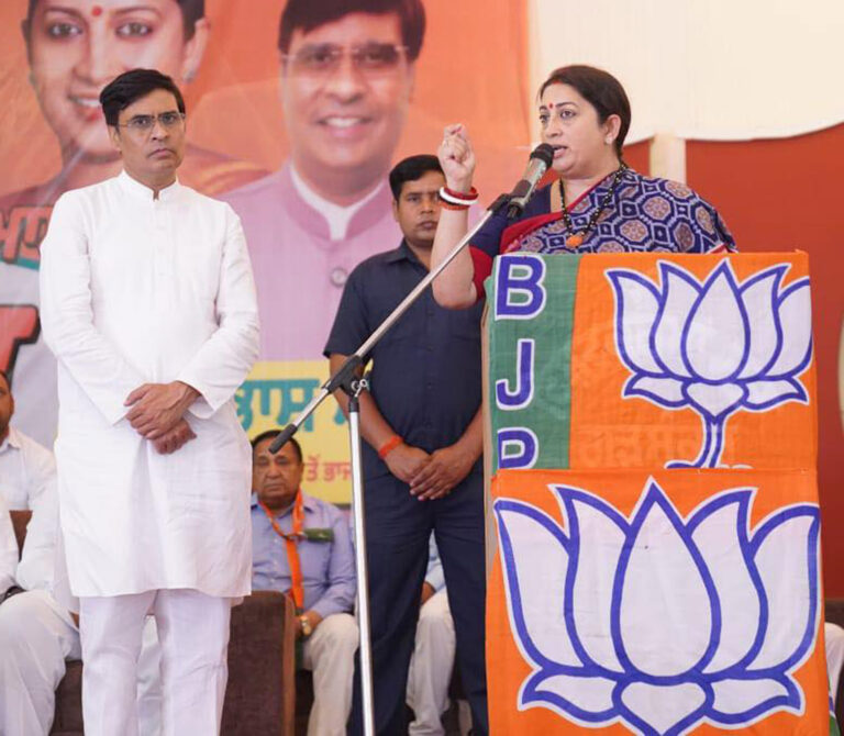 केंद्रीय मंत्री स्मृति ईरानी ने भाजपा प्रत्याशी डॉ. सुभाष शर्मा के लिए मांगे वोट गढ़शंकर, केंद्रीय महिला एवं बाल विकास...