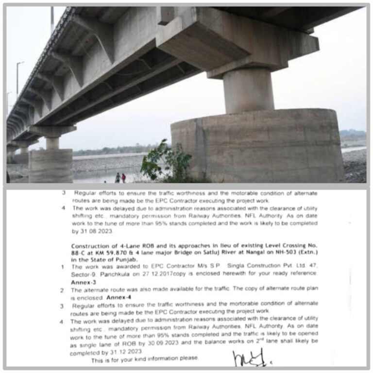 एडवोकेट निशांत गुप्ता ने फेसबुक के माध्यम से दी जानकारी, अब 30 सितंबर तक चलेगा नंगल का फ्लाईओवर संदीप गिल,...