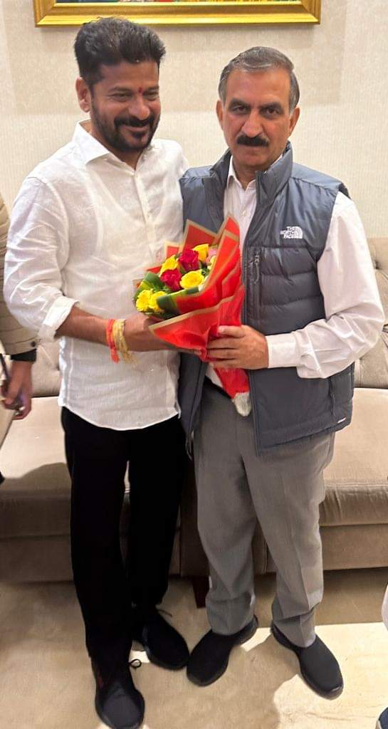 मुख्यमंत्री ठाकुर सुखविंदर सिंह सुक्खू आज नवनियुक्त मुख्यमंत्री रेवंत रेड्डी जी के शपथ ग्रहण समारोह में शामिल होने के लिए तेलंगाना पहुंचे।इस मौके पर मुख्यमंत्री ने रेवंत रेड्डी जी को तेलंगाना के मुख्यमंत्री चुने जाने पर हार्दिक बधाई एवं शुभकामनाएं दी।