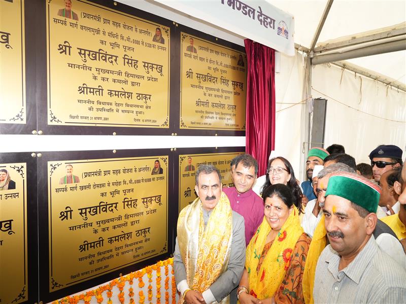 मुख्यमंत्री सुखविंद्र सिंह सुक्खू ने आज जिला कांगड़ा के देहरा विधानसभा क्षेत्र के लिए 50.14 करोड़ रुपये की लागत की पांच नई विकास परियोजनाओं की आधारशिला रखी। इन परियोजनाओं में 12.60 करोड़ रुपये की लागत से बनखंडी से बासा वाया मेहता सड़क का उन्नयन, 12.41 करोड़ रुपये की लागत से सुनहेत से बस्सी सड़क का उन्नयन, 11.88 करोड़ रुपये की लागत से खबली दोसड़का से मरहेड़े सड़क का उन्नयन, 7.57 करोड़ रुपये की लागत से बधाल से दौंटा सड़क का उन्नयन तथा 5.67 करोड़ रुपये की लागत से बगलामुखी से मंधीना सड़क का उन्नयन कार्य शामिल है।