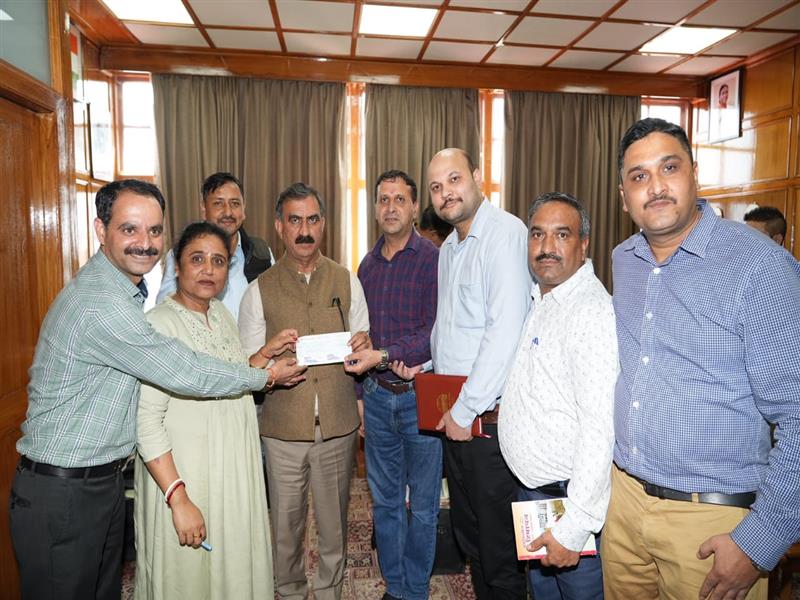 हिमाचल प्रदेश सचिवालय राजपत्रित अधिकारी संघ ने अध्यक्षा गीता शर्मा के नेतृत्व में आज यहां मुख्यमंत्री ठाकुर सुखविंदर सिंह सुक्खू से भेंट की और संघ की ओर से 3 लाख रुपये का चेक आपदा राहत कोष के लिए भेंट किया।