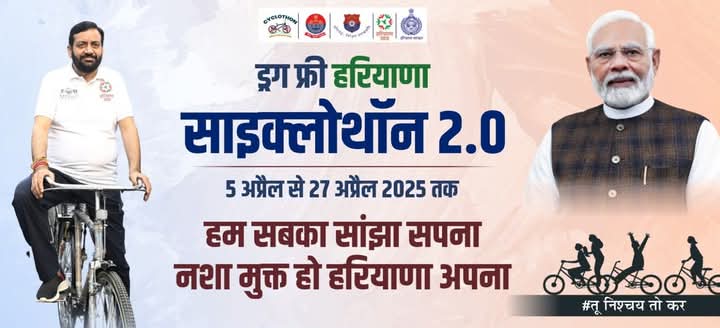 ड्रग फ्री हरियाणा का संदेश लेकर साथ आज (12 अप्रैल को) झज्जर पहुंचेगी साइक्लोथॉन