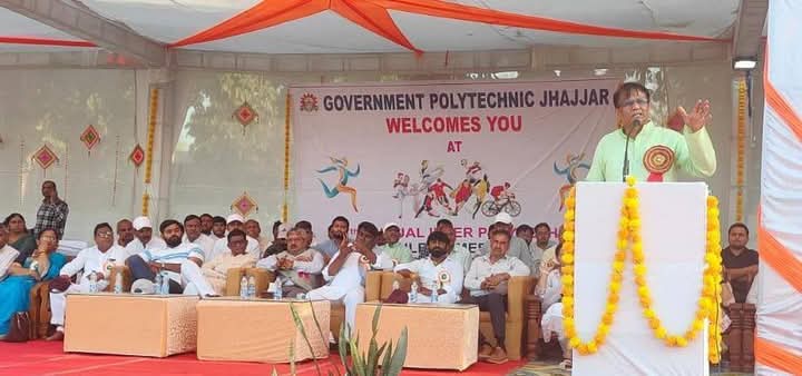 बहुतकनीकी संस्थान झज्जर में आयोजित तीन दिवसीय खेल प्रतियोगिता के पारितोषिक वितरण समारोह में बतौर मुख्य अतिथि पहुंचे प्रदेश के पूर्व कैबिनेट मंत्री औमप्रकाश धनखड़