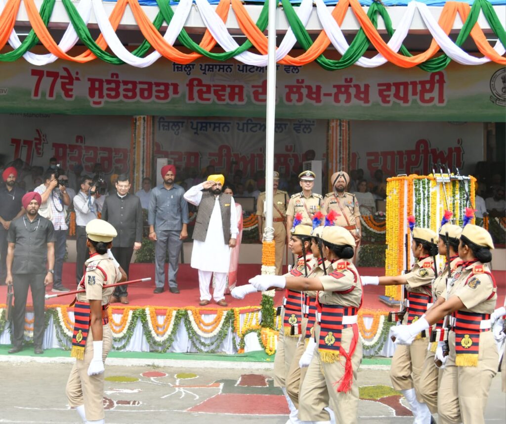 स्वतंत्रता दिवस के अवसर पर राज्य स्तरीय समागम के दौरान पटियाला में राष्ट्रीय झंडा लहराया