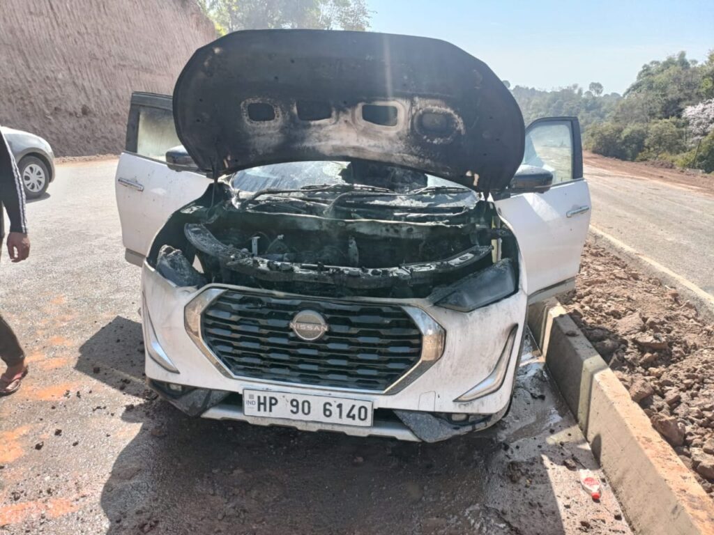 मंडी-पठानकोट नेशनल हाईवे पर जौंटा में चलती कार में लगी आग