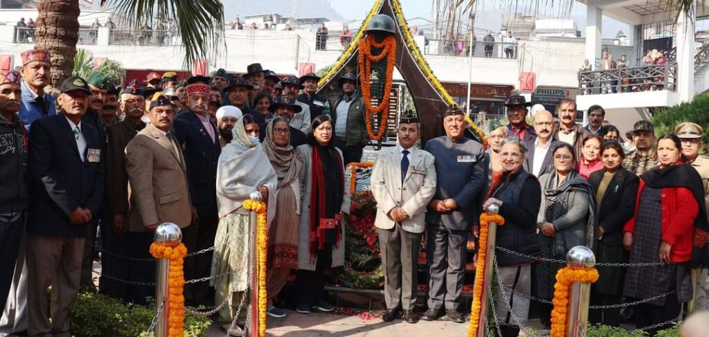 सेवानिवृत लेफ्टिनेंट जनरल राकेश कपूर (वीएसएम), एडीसी निवेदिता नेगी, युद्ध सेवा मेडल ब्रिगेडियर खुशाल ठाकुर, ब्रिगेडियर नवीन कुमार गोयल व नगर निगम मेयर विरेंद्र भट्ट, डिप्टी मेयर माधुरी कपूर, सेवानिवृत्त सैनिकों तथा जिला वासियों ने शहीद स्मारक पर वीर शहीदों को पुष्पांजलि अर्पित की।