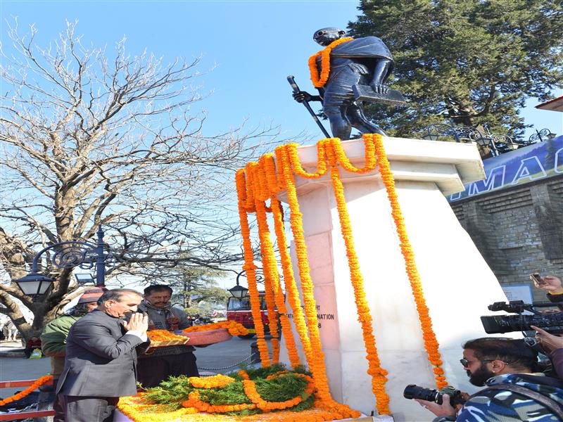 शहीद दिवस के अवसर पर राष्ट्रपिता महात्मा गांधी को राज्यपाल शिव प्रताप शुक्ल और मुख्यमंत्री सुखविंदर सिंह सुक्खू ने शिमला के रिज पर स्थित महात्मा गांधी की प्रतिमा पर पुष्पांजलि अर्पित की।