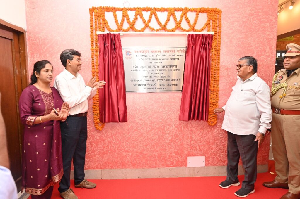 शिवांकुर शर्मा, नंगल, पंजाब के राज्यपाल एवं यू.टी. प्रशासक श्री गुलाब चंद कटारिया ने आज बीबीएमबी के सेक्टर 35-बी, चंडीगढ़ स्थित बीबीएमबी अधिकारी विश्राम गृह में 55 किलोवाट पीक रूफटॉप सोलर पावर प्लांट एवं वर्षा जल संचयन प्रणाली का उद्घाटन किया। इस अवसर पर बीबीएमबी के अध्यक्ष मनोज त्रिपाठी एवं बीबीएमबी के वरिष्ठ अधिकारी