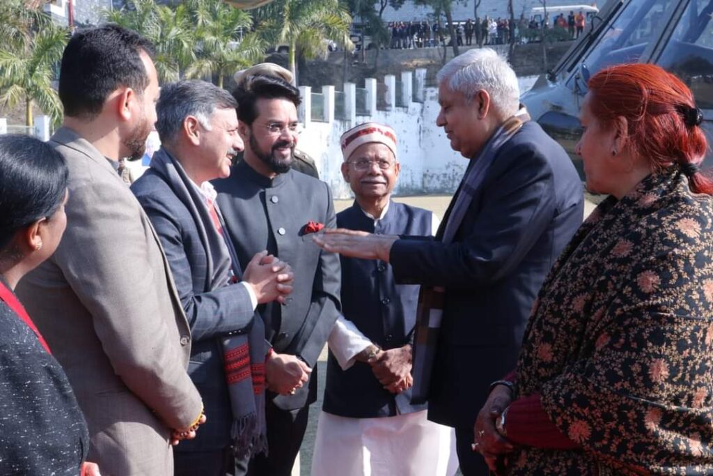 राज्यपाल शिव प्रताप शुक्ल, केंद्रीय सूचना एवं प्रसारण, युवा कार्यक्रम और खेल मंत्री अनुराग ठाकुर और मिनिस्टर इन वेटिंग कैबिनेट मंत्री राजेश धर्माणी ने उप-राष्ट्रपति का स्वागत किया।