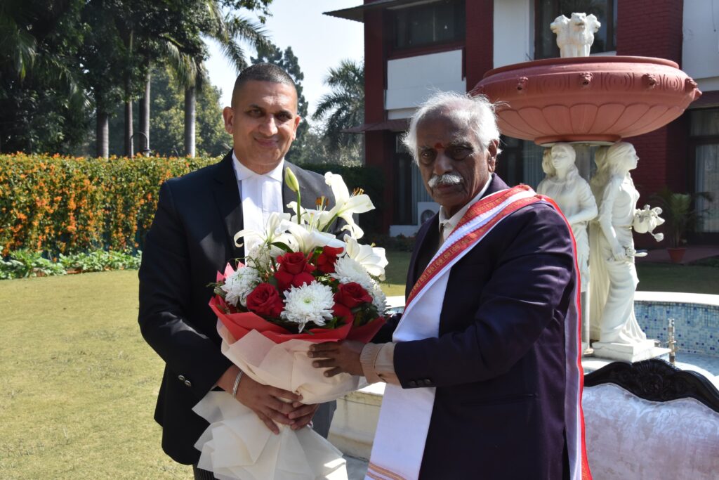 चंडीगढ़, 9 फरवरी –  हरियाणा के राज्यपाल बंडारू दत्तात्रेय से आज राजभवन हरियाणा में पंजाब के प्रख्यात लेखक, प्रकृति कलाकार और एडवोकेट हरप्रीत संधू ने शिष्टाचार भेट कर उनका स्वागत किया तथा उन्हें संधू द्वारा तैयार ‘सचखंड हरमंदिर साहिब के दिव्य दृश्यों‘ को दर्शाने वाले कैलेंडर 2024 भेट किया।