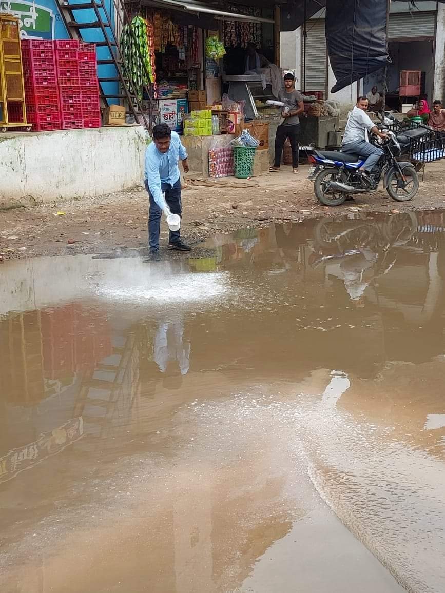 ब्लीचिंग पाऊडर का छिडक़ाव शुरू किया