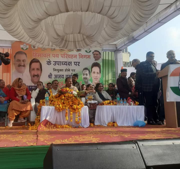 एचआरटीसी के उपाध्यक्ष अजय वर्मा ने संबोधन के दौरान हिमाचल प्रदेश के यशस्वी मुख्यमंत्री ठाकुर सुखविंदर सिंह सुक्खू का एक साधारण कार्यकर्ता को हिमाचल प्रदेश पथ परिवहन निगम का उपाध्यक्ष बनाने के लिए हार्दिक धन्यवाद दिया। उन्होंने कांगड़ा विधानसभा क्षेत्र के लोगों और आयोजित आयोजन स्थल पर आए हुए प्रत्येक व्यक्ति का धन्यवाद किया जो उन्हें आशीर्वाद देने के लिए आज यहां पहुंचे हैं। उन्होंने प्रदेश के उपमुख्यमंत्री एवं परिवहन मंत्री मुकेश अग्निहोत्री का भी आभार व्यक्त किया। उन्होंने विकास पुरुष स्वर्गीय जीएस बाली को याद करते हुए कहा कि विकास पुरुष का आशीर्वाद आज भी उन पर बना हुआ है जिस कारण आज इस उपलब्धि पर पहुंचा हूं। उन्होंने हिमाचल प्रदेश पर्यटन विकास निगम के अध्यक्ष व पर्यटन विकास बोर्ड के उपाध्यक्ष (कैबिनेट रैंक) आर.एस. बाली का भी आभार व्यक्त किया।