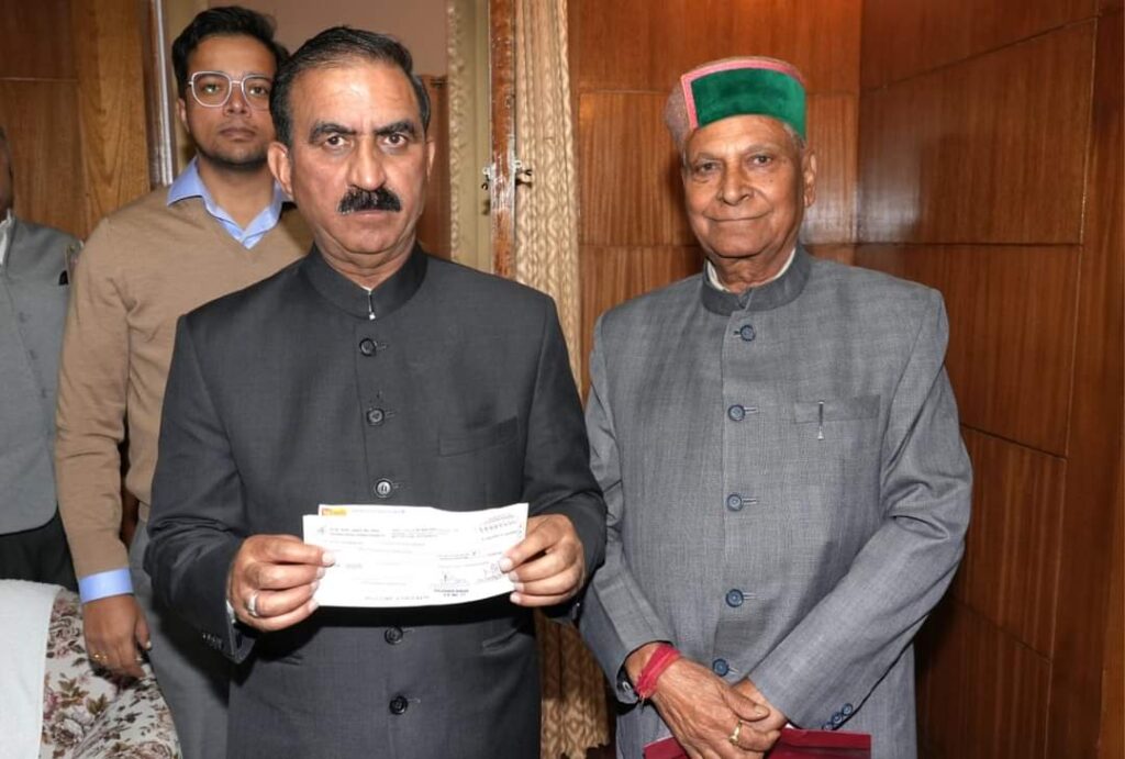 किशोरी लाल ने मुख्यमंत्री को कांगड़ा जिले के बैजनाथ क्षेत्र के लोगों की ओर से मुख्यमंत्री राहत कोष के लिए 1.24 लाख रुपए का चेक भेंट किया