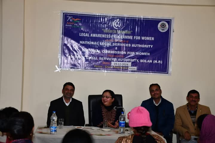 ज़िला विधिक सेवाएं प्राधिकरण की सचिव एवं अतिरिक्त मुख्य न्यायिक दण्डाधिकारी सोलन आकांक्षा डोगरा ने कहा कि कोई भी व्यक्ति राष्ट्रीय विधिक सेवाएं प्राधिकरण (नालसा) के टोल फ्री नंबर 15100 पर कॉल करके अपनी शिकायत दर्ज करवा सकता है तथा नालसा ऐप के माध्यम से प्राधिकरण से संबंधित विभिन्न सेवाओं का लाभ उठा सकता है। आकांक्षा डोगरा आज ज़िला विधिक सेवाएं प्राधिकरण सोलन द्वारा विकास खंड पट्टा की ग्राम पंचायत बारियां में नालसा के सहयोग से विधान से समाधान कार्यक्रम के तहत महिलाओं को अधिकारों के प्रति सजग करने के लिए आयोजित एक दिवसीय विधिक साक्षरता शिविर की अध्यक्षता कर रही थीं।