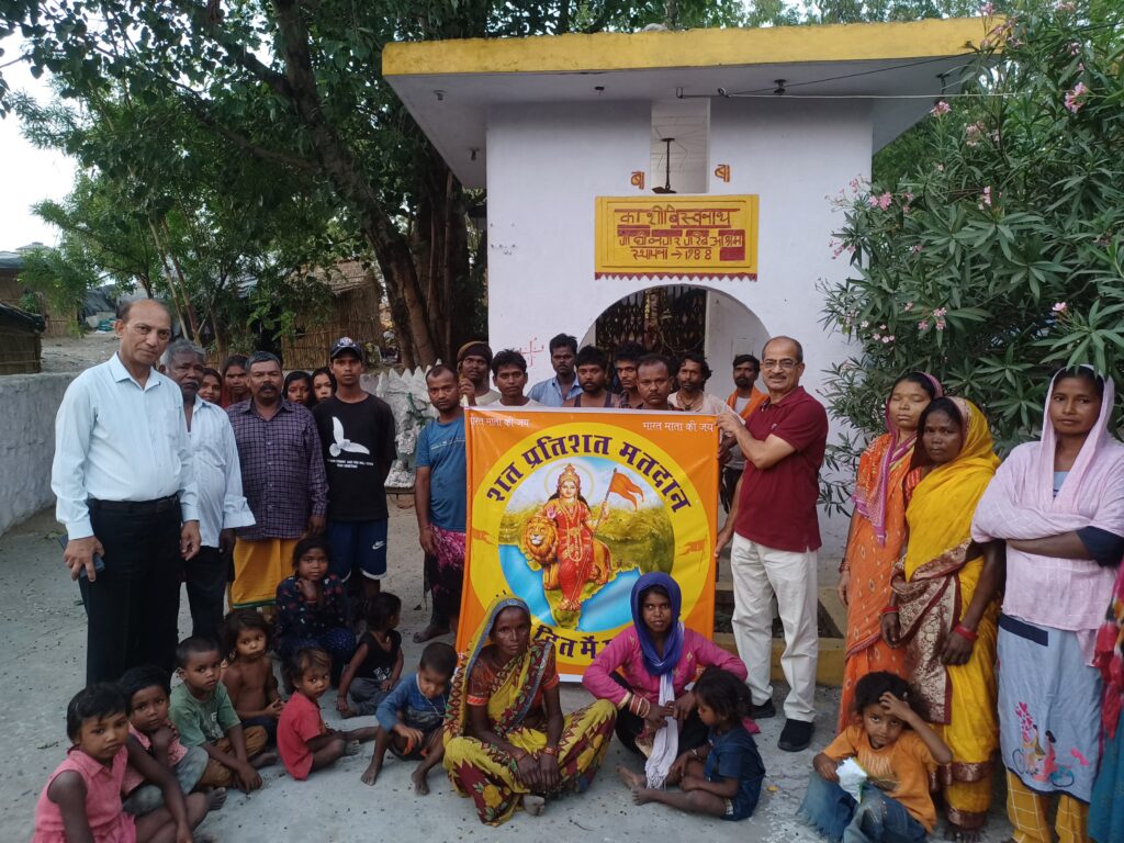 संदीप गिल, नंगल, मतदाताओं को मतदान करने के अपने संवैधानिक अधिकार के प्रति जागरूक अभियान की निरंतरता में भारत विकास परिषद् पंजाब पूर्व के प्रांतीय सलाहकार व सर्वहितकारी विद्यामंदिर नंगल के अध्यक्ष इं. कृष्‍ण कान्‍त सूद की अगुवाई में एक कार्यक्रम गत दिवस दिनांक 29 मई 2024 नंगल में एमपी दी कोठी इलाके के नजदीक दो नहरों के बीचो-बीच की जमीन पर बसीं झुग्गी-झोपड़ी बस्ती में स्थित श्री शिव मंदिर के प्रांगण में आयोजित किया गया, जिसमें इं सूद ने ‘शत प्रतिशत मतदान, राष्ट्र हित में मतदान’ मतदाता जागरण शीर्षक कार्यक्रम में वहाँ के मतदाताओं को उनके प्रत्येक वोट के महत्व के बारे जागरूक करके मतदान करने के लिए प्रेरित किया। झुग्गी-झोपड़ी बस्ती के निवासी परिवारों के सदस्यों बीरबल सिंह, मनोज ॠषिदेव, सोनिया देवी, द्रौपदी देवी, नैयना देवी, बबीता देवी, सोनू ॠषिदेव, सरस्वती देवी, रजनी कुमारी, संतोष पासवान समेत वहाँ के सभी वोटरों ने अवश्य मतदान करने की उत्सुकता जाहिर करते हुए संकल्प लिया कि “हम अवश्य वोट करेंगे, हम राष्ट्र हित में वोट करेंगे”। मतदाता जागरण अभियान के इस कार्यक्रम में इं. कृष्‍ण कान्‍त सूद के साथ वरिष्ठ नागरिक टोली नया नंगल के राम जी दास शामिल हुए।
