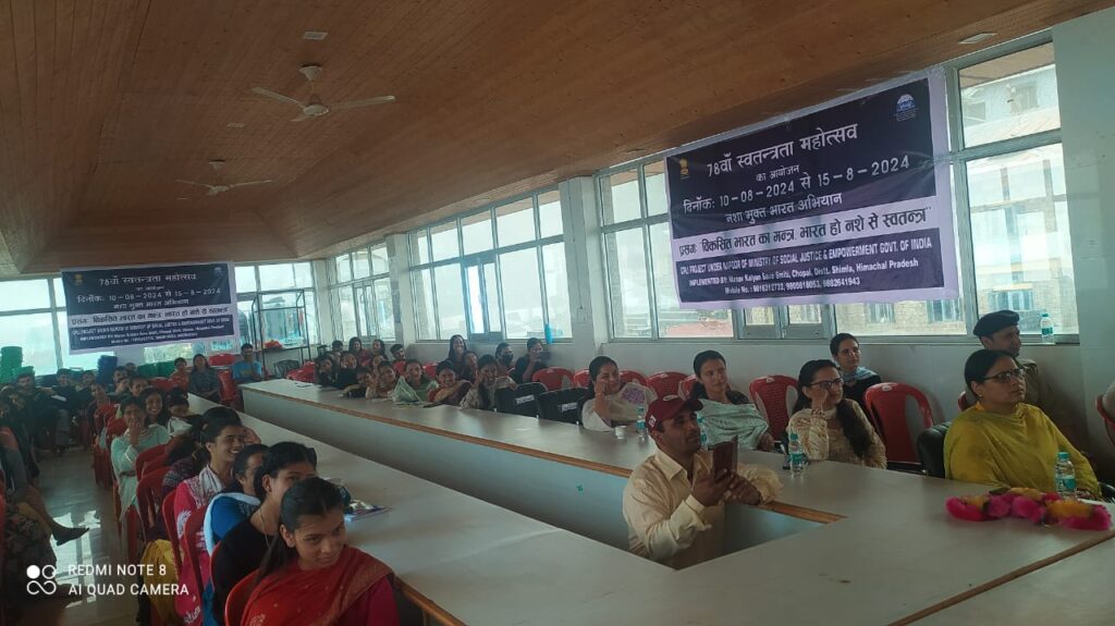 देश राज शर्मा, शिमला, केंद्र सरकार के सामाजिक न्याय और अधिकारिता मंत्रालय द्वारा वित्त पोषित और मानव कल्याण सेवा समिति चौपाल जिला शिमला द्वारा संचालित CPLI योजना के अंतर्गत मानव कल्याण सेवा समिति के द्वारा डिग्री कॉलेज चौपाल में युवाओं को नशे के दुष्प्रभावों से अवगत कर जागरूक करनें हेतु एक जागरूकता कार्यक्रम का आयोजन दिनांक 12 अगस्त 2024 को डिग्री कॉलेज चौपाल में किया गया ।