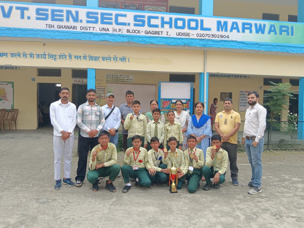 दौलतपुर चौक,15 सितंबर( संजीव डोगरा ): राजकीय वरिष्ठ माध्यमिक पाठशाला नंगल जरियाला में उप मंडल गगरेट की खण्ड स्तरीय खेलकूद प्रतियोगिता में मरवाड़ी स्कूल के लड़कों ने कुश्ती प्रतियोगिता में विनर ट्रॉफी जीतकर स्कूल के साथ साथ कोच डीपीई रणेश कंवर , पी.ई.टी रजनी बाला का नाम चमकाया है। इस प्रतियोगिता में रोनिक 38 किलोग्राम, हर्ष कौशल 41 किलोग्राम, अर्पित राणा 44 किलोग्राम, युवराज 42 किलोग्राम, पुष्पिंदर 68 किलोग्राम ने स्वर्ण पदक, जितेंद्र 57 किलोग्राम ने रजत पदक जश्न 35 किलोग्राम तो अनमोल 38 किलोग्राम ने कांस्य पदक जीता। सभी खिलाड़ियों का स्कूल पहुंचने पर उप प्रधानाचार्य गुलशन पठानिया ने स्वागत किया व बधाई दी। इस अवसर पर डीपीई रणेश कंवर , पी.ई.टी रजनी बाला, राजकुमार, गौरव संधू,राजेश कुमार, गुरदेव कौर, राजेश कुमार, अनमोल राणा व अन्य मौजूद रहे।