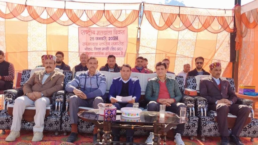 25 जनवरी2024 गोहर राष्ट्रीय मतदाता दिवस पर वरिष्ठ माध्यमिक पाठशाला गोहर में राष्ट्रीय मतदाता दिवस पर कार्यक्रम का आयोजन किया गया। कार्यक्रम में उप मंडल अधिकारी नागरिक गोहर लक्ष्मण सिंह कनेट मुख्य अतिथि के रूप में शिरकत हुए। कार्यक्रम के शुभारंभ में राष्ट्रीय मतदाता दिवस पर उपस्थित सभी प्रशासनिक अधिकारियों ,स्कूल छात्रों ,कॉलेज छात्रों को लोकतंत्र को सफल बनाने के लिए व युवा मतदाताओं को मतदान के महत्व और चुनाव से जोड़ने के लिए मुख्य अतिथि के द्वारा शपथ दिलाई गई । कार्यक्रम में राष्ट्रीय मतदाता दिवस पर स्कूल छात्रों, कॉलेज छात्रों और महिला मंडल की महिलाओं के द्वारा राष्ट्रीय मतदाता दिवस पर चुनाव के महत्व व मतदान की जन जागरूकता बढ़ाने के लिए भाषण, नाटक, नृत्य प्रस्तुत किए गए। कार्यक्रम में मुख्य अतिथि एसडीएम गोहर ने उपस्थित स्कूल व कॉलेज के छात्रों व जनसमूह को संबोधित करते हुए कहा कि 2011 से ही भारत के निर्वाचन आयोग के स्थापना दिवस, यानी 25 जनवरी 1950 को चिन्हित करने के लिए पूरे देश में हर साल 25 जनवरी को राष्ट्रीय मतदाता दिवस मनाया जाता है। इस एनवीडी उत्सव का मुख्य उद्देश्य नागरिकों में चुनावी जागरूकता पैदा करना और उन्हें चुनावी प्रक्रिया में भाग लेने के लिए प्रोत्साहित करना है। देश के मतदाताओं को समर्पित, राष्ट्रीय मतदाता दिवस का इस्तेमाल मतदाताओं, खासकर नए-नए पात्र युवा मतदाताओं के नामांकन की सुविधा के लिए भी किया जाता है। देश भर में आयोजित एनवीडी समारोहों में नए मतदाताओं का अभिनंदन किया जाता है और उन्हें अपना मतदाता फोटो पहचान पत्र (ईपीआईसी) सौंपा जाता है। सांस्कृतिक कार्यक्रम में भाग लेने वाले स्कूली छात्रों व महिला मंडल को मुख्य अतिथि के द्वारा मोमेंटो भेंट कर सम्मानित किया गया । कार्यक्रम में नाइब तहसीलदार इलेक्शन इंदर सिंह ,आईटीआई चच्योट प्रिंसिपल मनीष कुमार , प्रिंसिपल चंदेश्वर शर्मा, स्वीप नोडल ऑफिसर रतन ठाकुर ,पवनजीत ,हुकम सिंह ठाकुर व अन्य गणमान्य उपस्थित रहे ।