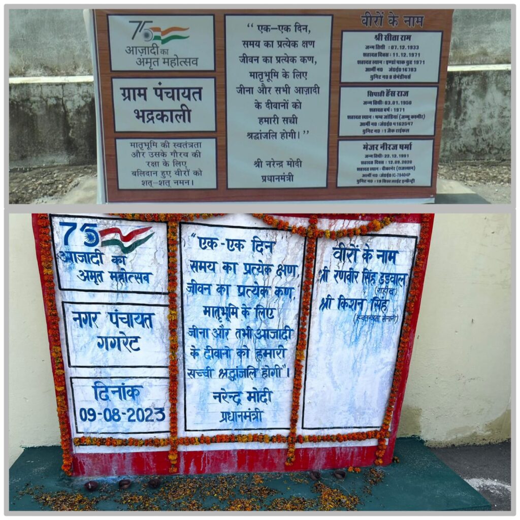 शहीदों की स्मारक पट्टिका लगाने में खाना पूर्ति कर रही है पंचायतें