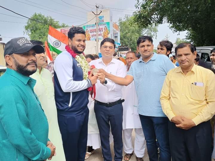 मूल रूप से बहादुरगढ के रहने वाले हैं सिल्वर मेडल विजेता योगेश कथुनिया ————- पेरिस पैरालंपिक 2024 में डिस्कस थ्रो (चक्का फेंक) स्पर्धा में सिल्वर मेडल जीतने वाले योगेश कथुनिया का रविवार को अपने गृह क्षेत्र में पहुंचने पर प्रशासन द्वारा बहादुरगढ में जोरदार स्वागत किया गया। नायब तहसीलदार रविंद्र कुमार ने बहादुरगढ स्थित हनुमान मंदिर के समीप फूल माला पहनाकर सिल्वर मेडल विजेता का स्वागत किया। नायब तहसीलदार ने योगेश कथुनिया का स्वागत करते हुए कहा कि आपने अपने झज्जर जिले का नाम विश्व पटल पर रोशन किया है, ये बेहद बड़ी उपलब्धि है। उन्होंने कहा कि योगेश ने लगातार दूसरी बार पैरालंपिक में मेडल जीतकर अंतरराष्टरीय स्तर पर जिले का नाम रौशन किया है,जोकि अपने आप में गर्व और गौरव की बात है। उन्होंने इस शानदार उपलब्धि के लिए योगेश के पिता ज्ञान चंद,माता मीना देवी,भाई राजेंद्र चौहान,बहन पूजा रानी सहित समस्त परिवार के सदस्यों को भी बधाई और शुभकामनाएं दीं। नायब तहसीलदार ने कहा कि प्रत्येक बहादुरगढवासी के लिए बेहद खुशी की बात है कि जिला झज्जर के खिलाड़ी लगातार बेहतरीन प्रदर्शन करते हुए जिले का नाम अंतरराष्ट्रीय पटल पर रोशन कर रहे हैं। उन्होंने कहा कि योगेश कथुनिया ने उत्कृष्ट प्रदर्शन करते हुए मेडल अपने नाम किया है। उन्होंने योगेश के उज्ज्वल भविष्य की कामना करते हुए कहा कि वे अपनी मेहनत के दम पर भविष्य में इसी प्रकार से देश का नाम रौशन करेंगे। इस दौरान योगेश कथूनिया ने कहा कि देश के लिए मेडल जीतना हर खिलाड़ी का सपना होता है और मेडल जीतने के बाद बेहद अच्छा लग रहा है। उन्होंने कहा कि अब उनका अगला लक्ष्य मैडल का रंग बदलना है,जिसके लिए वे निरंतर अभ्यास करेंगे। इस दौरान बहादुरगढ शहर में जगह जगह सिल्वर मेडल विजेता खिलाडी का स्वागत किया गया।