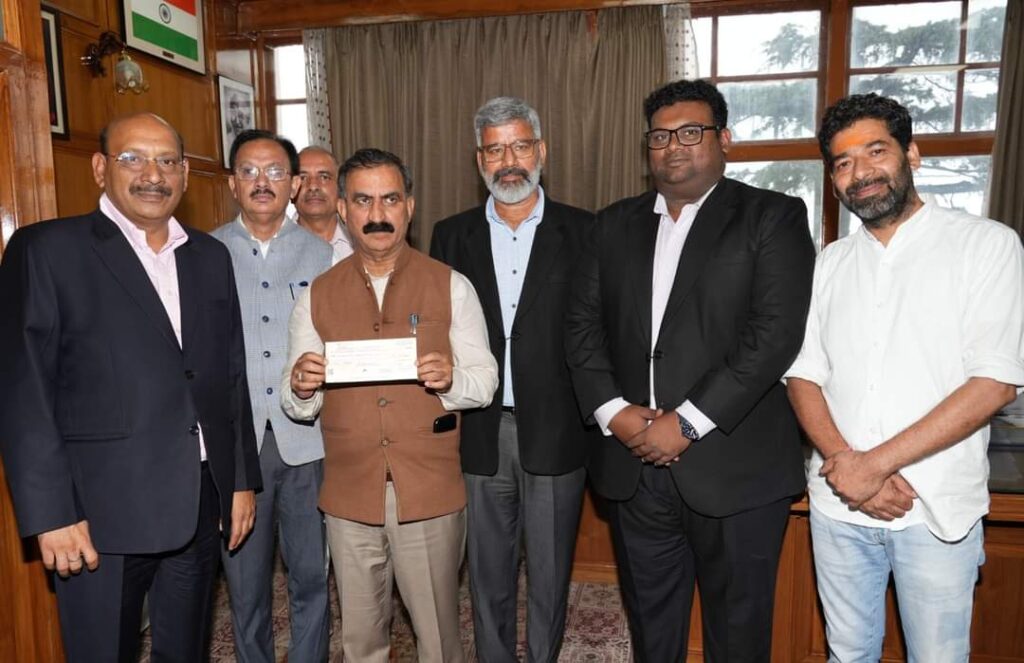 मुख्यमंत्री ठाकुर सुखविंदर सिंह सुक्खू को शिमला में एशिया रिसॉर्ट्स लिमिटेड टिंबर ट्रेल रिसॉर्ट्स परवाणू द्वारा मुख्यमंत्री राहत कोष के लिए ग्यारह लाख रुपये का चेक भेंट किया।मुख्यमंत्री ने इस पुनीत कार्य के लिए टिंबर ट्रेल रिसॉर्ट्स का आभार व्यक्त किया।