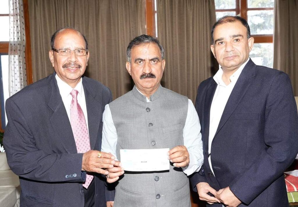 एचपी गवर्नमेंट डेंटल कॉलेज एंड हॉस्पिटल, शिमला के पूर्व प्रधानाचार्य प्रोफेसर डॉ. नानक चंद राव ने मुख्यमंत्री ठाकुर सुखविंदर सिंह सुक्खू को आपदा राहत कोष के लिए एक लाख रुपये का चेक भेंट किया। मुख्यमंत्री ने इस पुनीत कार्य के लिए डॉ. नानक चंद राव का आभार व्यक्त किया है।