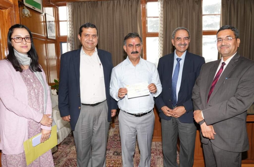 Himachal Pardesh Uncategorized मुख्यमंत्री को आपदा-राहत कोष- 2023 के लिए 1 करोड़ रुपये का चेक भेंट किया 3 years ago shivalik-admin हिमाचल प्रदेश विद्युत नियामक आयोग ने आज शिमला में मुख्यमंत्री ठाकुर सुखविंदर सिंह सुक्खू को आपदा-राहत कोष- 2023 के लिए 1 करोड़ रुपये का चेक भेंट किया। मुख्यमंत्री ने पीड़ित मानवता की सेवा में इस पुनीत कार्य के लिए आयोग का आभार व्यक्त किया है। Post navigation Previous हैंडलूम न केवल भारतीय प्राचीन ग्रामीण उद्योग है बल्कि एक मनमोहक शानदार कला भी है: बंडारूNext विक्रमादित्य सिंह ने रोहड़ू विस में आपदा प्रभावित क्षेत्रों का किया दौरा, लोगों की सुनी समस्याएं